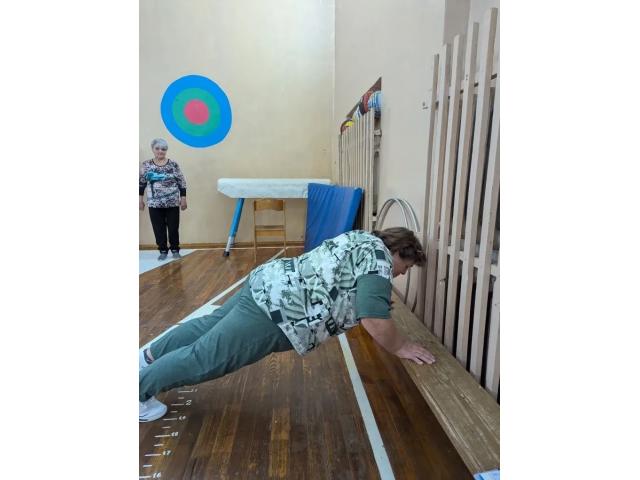 Участникам предстояло продемонстрировать свою гибкость, выносливость и силу, пройдя ряд испытаний. Наши неутомимые бабушки с блеском справились с заданиями: они с энтузиазмом выполняли сгибания и разгибания рук в упоре о гимнастическую скамью и с опорой на стул, демонстрировали гибкость в наклонах стоя на скамье, а также уверенно преодолели наклон из положения лежа на спине.